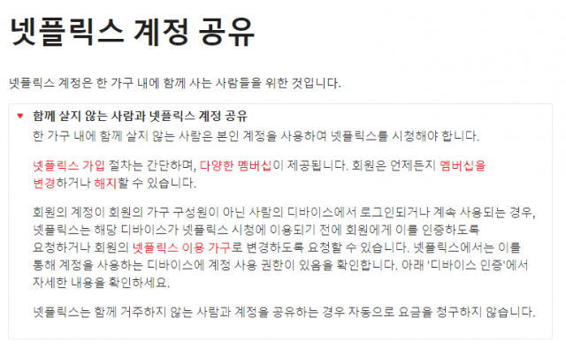 한 장소에 같이 거주하는 이용자들에 한해서만 계정을 공유할 수 있도록 서비스를 변경하는 방향이라고 해